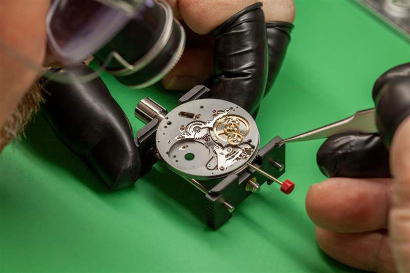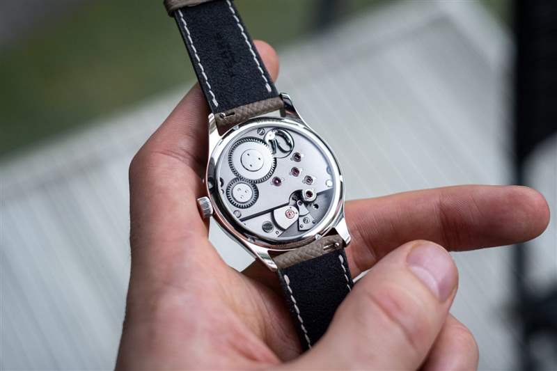 Fears Garrick 發揮了他們的優勢。UTG04 手動上鏈機芯是 Garrick 自己的,除了橋板上的現代無煙煤色飾面外,其超大的自由彈簧擺輪定義了它,通過表盤上的開口可見。如果您以前看過他們的任何 S 型號,您就會大致知道會發生什么。