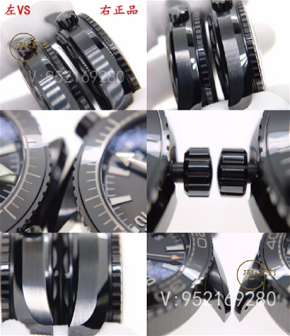 這款“深海之黑”不單單是“陶瓷殼套”那么簡單,從陶瓷的原材料,配比,燒制工藝無限接近原裝。整個殼套也不只追求外觀相似度,而且整個殼套的內部結構,配件,都是無限接近的1:1進行復刻的。這款“深海之黑”的殼套結構有兩個開創之舉:“一體化陶瓷殼套”,以往的出現的陶瓷殼套腕表,陶瓷殼內都含有一個金屬內膽,連結整個殼套構件,啟到密封防水的作用。而這款“深海之黑”的殼套是均由整塊黑色陶瓷打造而成的,又要確保能夠防水而去還要能夠潛水,在陶瓷制表工藝上邁上了新的臺階,這對歐米茄來說在腕表中堪稱開創之舉,這對VS來說把復刻表的制造工藝、精度又提升一個高度,堪稱又一個新的里程杯。還有,值得一提的是,VS版本的“深海之黑”的底蓋也做到跟正品一樣,也是啞光黑陶瓷,大家不用再擔心底蓋出現掉色的問題。