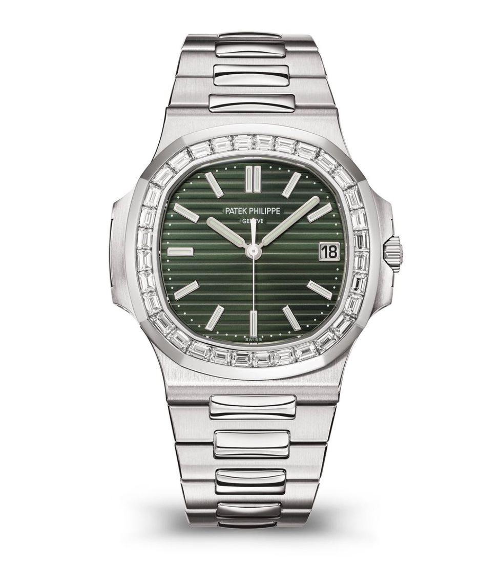 2021是滿滿的金鷹話題之年,在2021年初傳出PP金鷹5711不銹鋼藍面停產消息后,當時就讓其價格瞬間飆漲。而到了4月,PP隨之推出不銹鋼橄欖綠色日暉紋表盤款式,40mm表徑+服貼弧度,與奢華鑲鉆橄欖綠面盤,收服藏家的心。