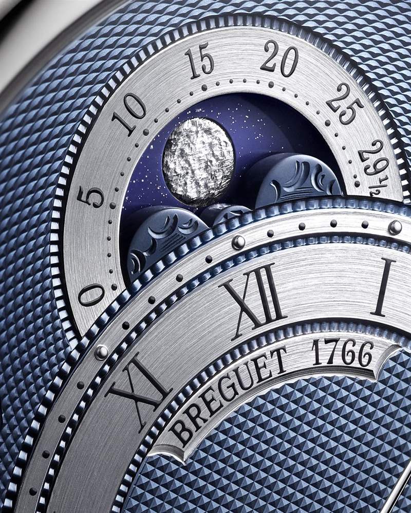 早在18世紀時,大家還是使用「懷表」來配合觀測星象、顯示日期、讀時等不同的天文功能,特別是在茫茫大海上航行的船只,更需要航海鐘來定向航向。當時,制表大師Abraham-Louis Breguet,就是我們現在熟稱的寶璣大師,首度在懷表上設計了月相盈虧顯示,能準確地顯示月亮在一個周期內,透過云朵遮蔽,從新月漸變到上弦月、滿月、下弦月...開始到結束時的每日形狀變化。