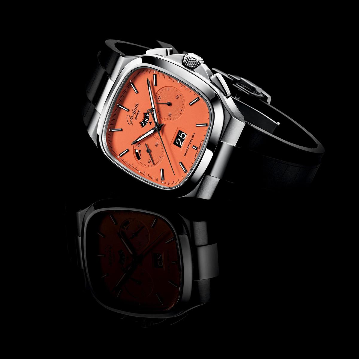 前陣子格拉蘇蒂原創(chuàng)(GLASHüTTE ORIGINAL)才發(fā)表新的PanoMatic Calendar年歷腕表,近期則又追加兩款Seventies Chronograph Panorama Date新色「 電音藍」和「 活力橙」,Seventies系列的方形表殼結(jié)合繽紛飽和的顏色,給人一種70年代的華麗復古氛圍。