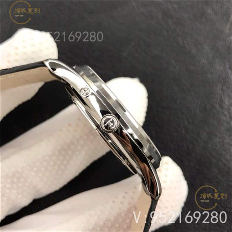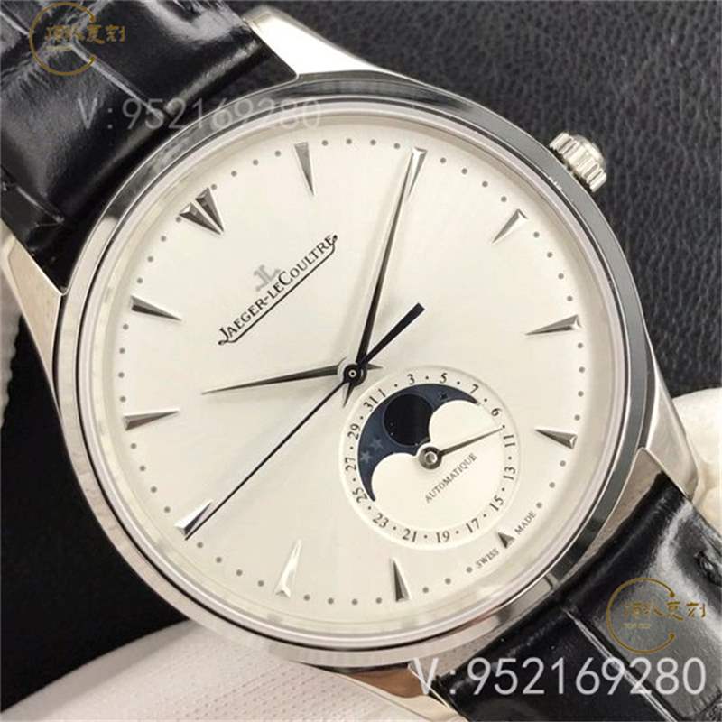 ZF廠積家月相大師系列,表殼直徑39mmX9.9mm與原裝同步。六點鐘的子盤擁有陽歷陰歷(月相)雙期顯示,月相一月轉一圈,功能和正品一致。技術突破:采用9015改積家自產Cal.925/1機芯,功能百分百同步原裝自產機芯。走時穩定,素質堅挺。細節突破:從側面觀察腕表盤面發現有微微的弧度,ZF為了達到這一效果,耗時費力多次調整模具,確保神韻和感覺能與原裝相媲美。ZF積家月相大師,滿足您對月相的一切美好情懷。