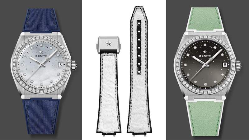 身為女表定位的DEFY Midnight,快拆表帶設計是它的一大特色,表款均附有三條表帶及一個可互換的折疊扣,加上今年ZENITH也和同屬LVMH集團的Nona Source合作,推出永續概念的表帶,以集團旗下時尚和皮具品牌的剩余布料,經由特殊處理之后重新制作,這樣的永續循環讓旗下高級品牌眾多的LVMH做起來更有說服力,對于開始發展快拆表帶的ZENITH來說也是很得力的資源。