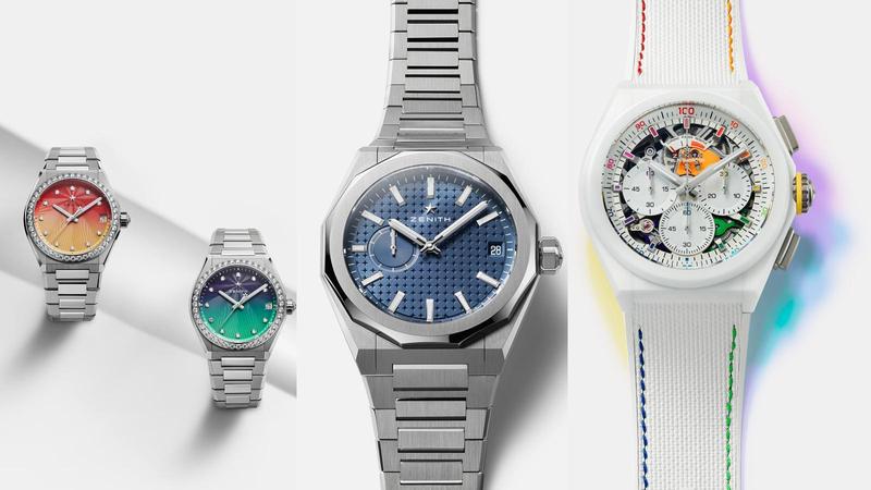 這兩年ZENITH在顏色方面有不少新的嘗試,像是利用機芯電鍍結合有色藍寶石水晶鑲嵌的DEFY 21 Spectrum、DEFY 21 Ultrablue以及Ultraviolet也是將顏色鍍到夾板上的嘗試。今年ZENITH又多了一種顏色表現的新手法,Defy 21 Chroma利用彩虹般的顏色呈現,在時標和計時刻度上攤開了一圈色譜,時標顏色下方的夾板也以同色調鍍色呼應,搭配白色陶瓷表殼圖顯得更繽紛,白色表帶也車了四條不同顏色的縫線,搭上El Primero 9004高振頻機芯,以彩虹色和高振頻為這只專賣店限量款創造亮點。