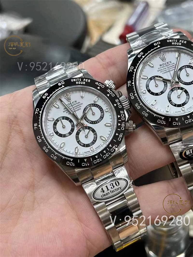 對于bt廠勞力士迪通拿4130一體機版本復刻表,小編已經寫過幾篇評測了,想要了解的可以去站內搜索。迪通拿最早其實都是7750機芯,還沒有現在的4130機芯,當時因為機芯緣故,迪通拿厚度方面無法做到對版,當時n廠迪通拿、tw廠、jh廠這些都是7750機芯,后面經過n廠為了更好的迎合市場,才去找的機芯廠家獨家定制了一款4130機芯,這款機芯一上市,就被譽為市場最強的迪通拿復刻機芯,經常時間的論證,也確實達到了天花板級別,不論是機芯的穩定性還是外觀仿真度都高度還原了zp,不過避震器還是和正品有差別,是有卡度游絲,因為成本原因做不到無卡度游絲,這點因為是密底設計,所以無傷大雅了,反正到目前為止這款丹東4130機芯,依舊是目前迪通拿復刻表最強機芯,今天給大家帶來的bt廠迪通拿和c廠迪通拿都是基于這款機芯才得以復刻成功的!