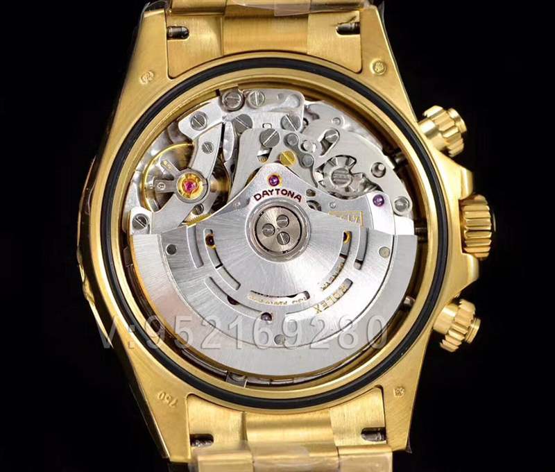 N廠綠金迪116508后蓋采用三角抗紋耗式底蓋,緊密旋入,大大增加防水性能。底蓋四個邊角都有相應的貴重金屬印記!機芯搭載N廠定制版4130機芯,拆開之后就可以清楚地看到機芯的構造,采用進口的KIF避震器,所有機芯細節幾乎完美還原。這個定制4130機芯可以說是現在整個行業里最好的一枚機芯,不僅功能完美還原,還讓厚度與原版達到了一致。