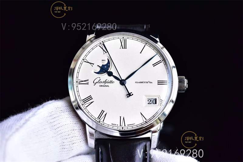 大家好,我是zslhs小編,格拉蘇蒂是一家德國的制表品牌,在手表制作的風格元素中,包含了很多的德國風格元素,尤其是這款原裝議員系列大日歷月相腕表,型號100-04-32-12-04,這款表裝配著格拉蘇蒂原裝機芯,做工十分出色,很多表友都比較喜歡,在復刻市場上卻沒有幾個廠家能夠做到一致,這次gf廠推出之后,也算是讓很多格拉蘇蒂表迷有了更具性價比的選擇。
