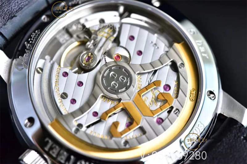此款gf廠的格拉蘇蒂原創議員,是工廠購入正品開模制作的表款,之所以說明這一點,是因為很多開款制作此款腕表的復刻廠基本就是看圖制作。尺寸上保持于官方一致,外觀細致,工藝量好。高通透藍寶石鏡面,燒鋼藍指針,即使采用的甲板,但是甲板同樣經過了精細的打磨,擺輪以及鵝頸都經過了細微的修正。修正盤面細節,綜上細節來說,這款腕表是一款非常不錯的復刻表,可以拿去玩耍。