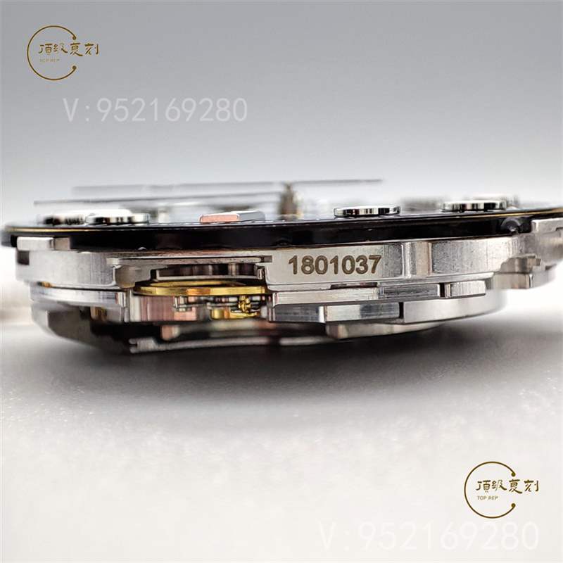 這里大家要注意,正品采用的是無卡度游絲,只有一個突出的地方,而VS廠復(fù)刻版是有卡度游絲,是有兩個突出的地方。這也是這款機芯比較容易辨別真假的地方,不過因為是密底設(shè)計,一般我們也不會讓人看到機芯!