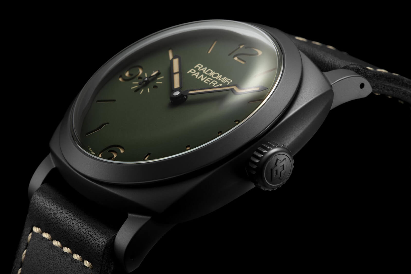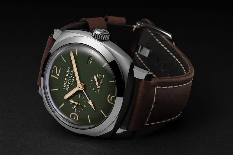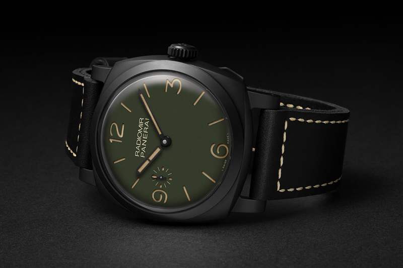 這四個基本上只是一個整容,用深色啞光綠色代替通常是黑色的,有時是奶油色的表盤。當然,這并不是什么突破性的東西,但結(jié)合金色指針和奶油數(shù)字,它很漂亮,即使對于非 Paneristi 來說也是如此。