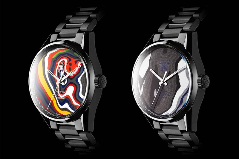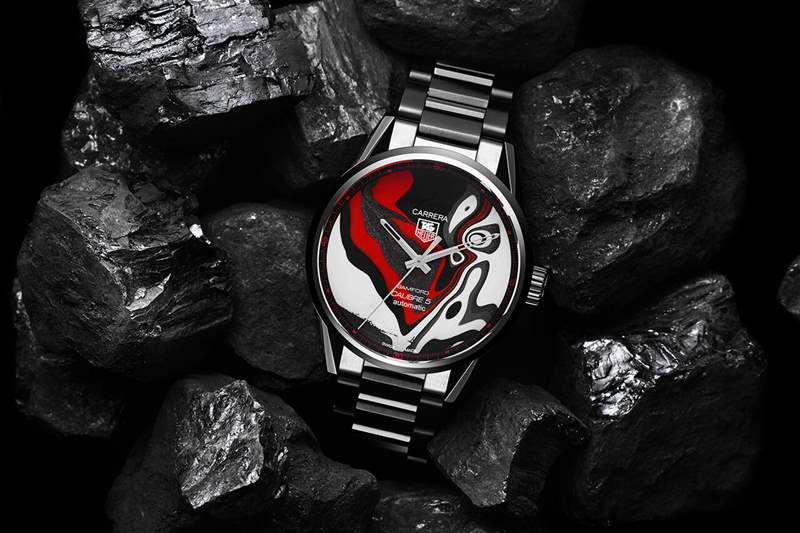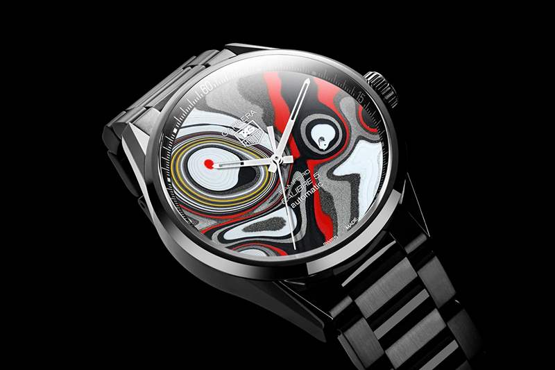 汽車需要大量油漆。事實上,他們需要如此之多,以至于徑流有自己的名字:Fordite。這是隨著時間的推移在工廠中積累的過度噴涂,一層又一層的堅固、高質量的油漆。大多數時候它只是被浪費和丟棄。但對于 TAG Heuer、Black Badger 和 Bamford Watch Department 之間的最新三通來說,它為這款限量版 TAG Heuer Carrera Calibre 5 打造了一個地獄般的表盤。