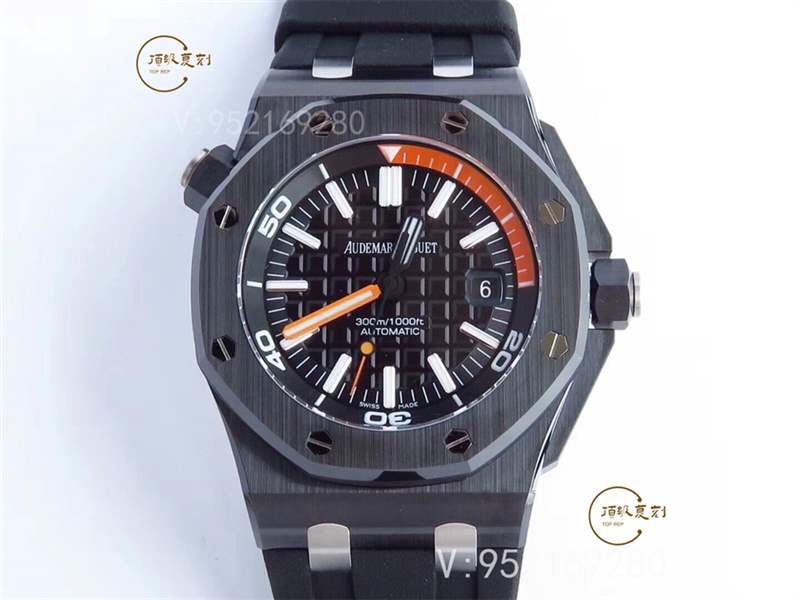 JF愛彼15707整體呈黑色,給人一種很低調時尚的感覺,讓人愛到極致,表頭經典的八角造型,深深的吸引到看到這只表的所有人,藍寶石鏡面下日歷窗的迷你藍寶石鏡面鍍藍膜,讓人有一種莫名的感動,橙色的刻度內圈給人一種與生而來的自信,這只表仿佛一只啞光版的黑色蘭博基尼一樣性感迷人。