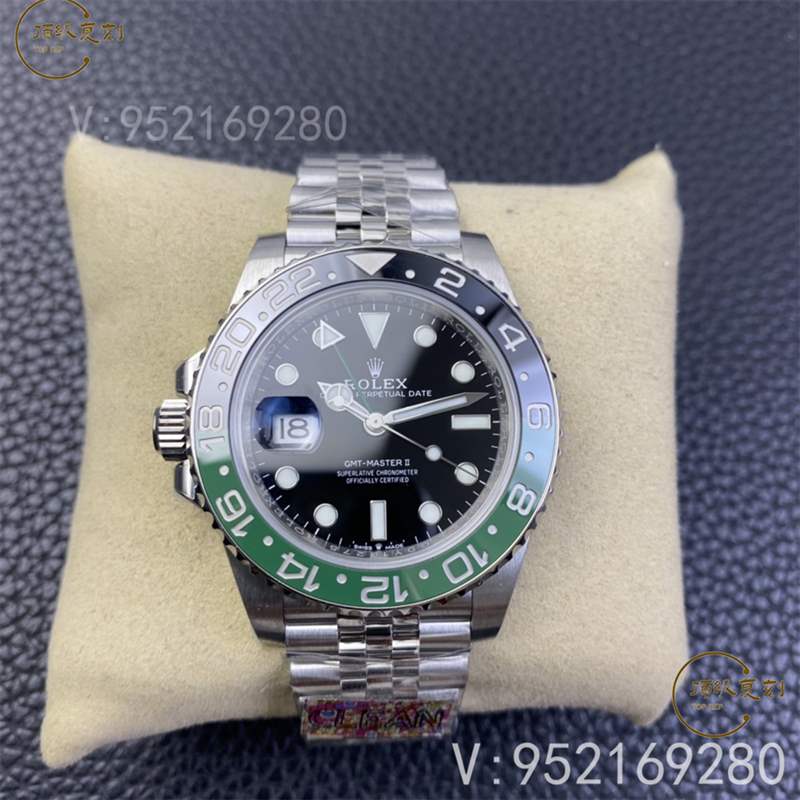 大家好,我是zslhs小編,2022年勞力士推出了一款全新的格林尼治二代腕表,黑綠配色被稱為雪碧圈,再加上把頭左側(cè)設(shè)計,也被稱為左撇子,別具一格,令人耳目一新,推出之后就成為了22年爆款產(chǎn)品,在剛推出的時候,還有表友問我什么時候能夠有復(fù)刻版本,不過當(dāng)時只有小廠還有v9廠,做工不算頂級,后面c廠成功購入正品復(fù)刻之后,才有了現(xiàn)在最頂級的版本,做工十分優(yōu)秀,還原度超高,今天小編給大家介紹C廠(Clean廠)勞力士格林尼治雪碧黑綠圈左撇子復(fù)刻表M126720VTNR對比正品怎么樣!