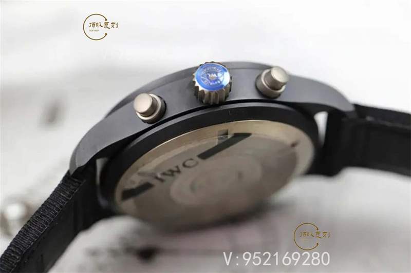 ZF廠萬國陶瓷飛行員時計復刻表很好的展現了ZF廠對于磨砂工藝處理超高的技術,質感十分細膩順滑。表冠其上鐫刻了IWC萬國表品牌LOGO圖樣,并且四周選用了防滑紋理打磨,方便調校時刻。