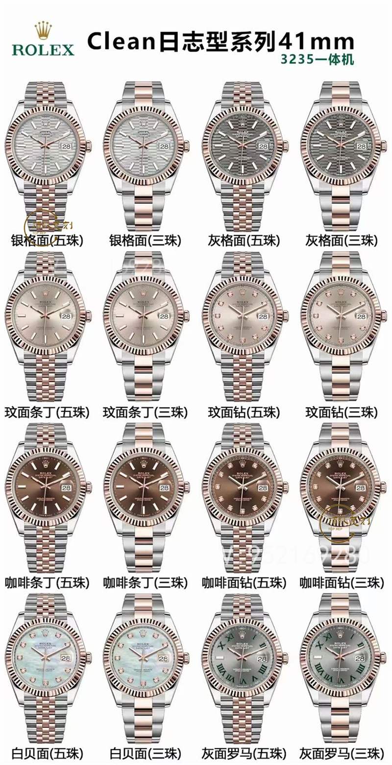 首先我們先看看c廠官方介紹:clean廠/C廠 強悍來襲 勞力士41mm日志型系列 1:同步原裝搭載3235一體機 2:材質方面整體采用了904鋼制,搭配AR廠鋼帶(精拋細磨) 3: 最強字面,黑面漆黑如墨,深邃穩重,白面皎潔如月,持久經典,藍面晶瑩透亮,時尚高貴。 4:日歷字體對版。 5:唯一做到指針夜光/字釘夜光 做到同色 因為都是第三方工廠加工+自購瑞士 c1+c3夜光粉 6:尊貴電鍍鉑金圈口,閃閃發光。 7:表鏡面采用藍寶石水晶玻璃。