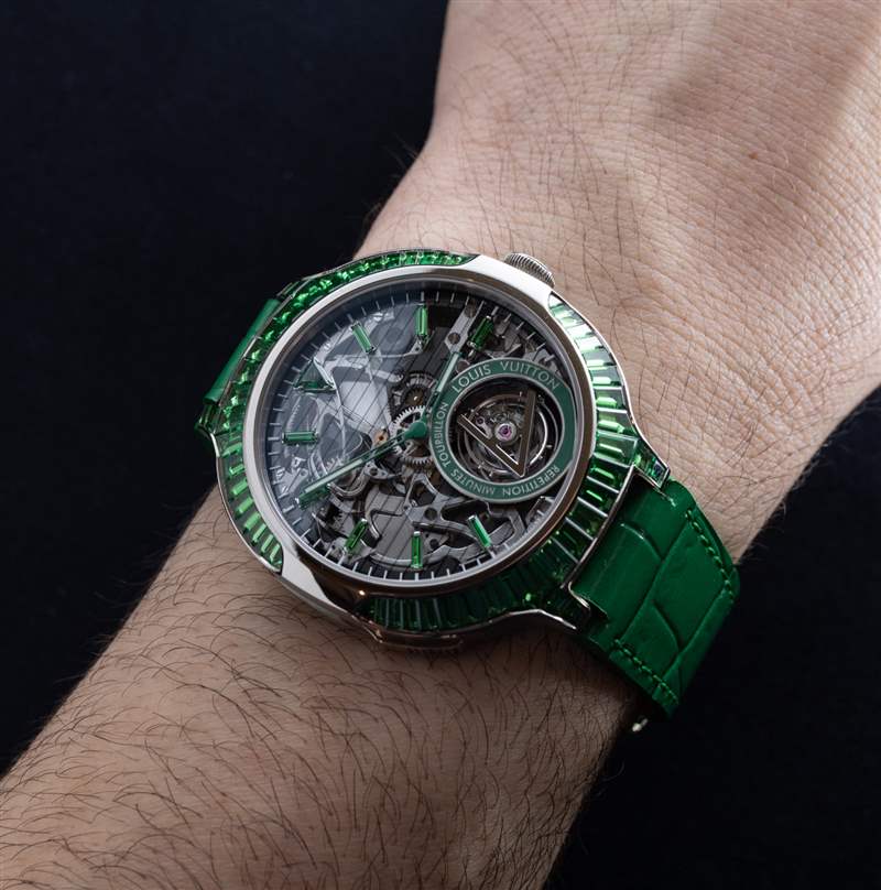 雖然最受歡迎的路易威登手表都配備了該品牌標(biāo)志性的 Tambour 表殼(它本身有子變體,包括 Tambour Curve 和 Tambour Moon),但還有其他有吸引力的選擇,包括 Louis Vuitton Voyager 表殼,這是這兩款高端三問陀飛輪手表的基礎(chǔ)。我會(huì)第一個(gè)承認(rèn) Voyager 表殼在離開手腕時(shí)看起來有點(diǎn)不對(duì)勁,但在手腕上,我發(fā)現(xiàn)它非常優(yōu)雅且非常舒適。雖然有低價(jià)的路易威登航海者手表可供選擇,但我們?cè)谶@里發(fā)現(xiàn)航海者表殼是路易威登航海者三問飛行陀飛輪中一些非常奢華的奢侈品的基礎(chǔ)。
