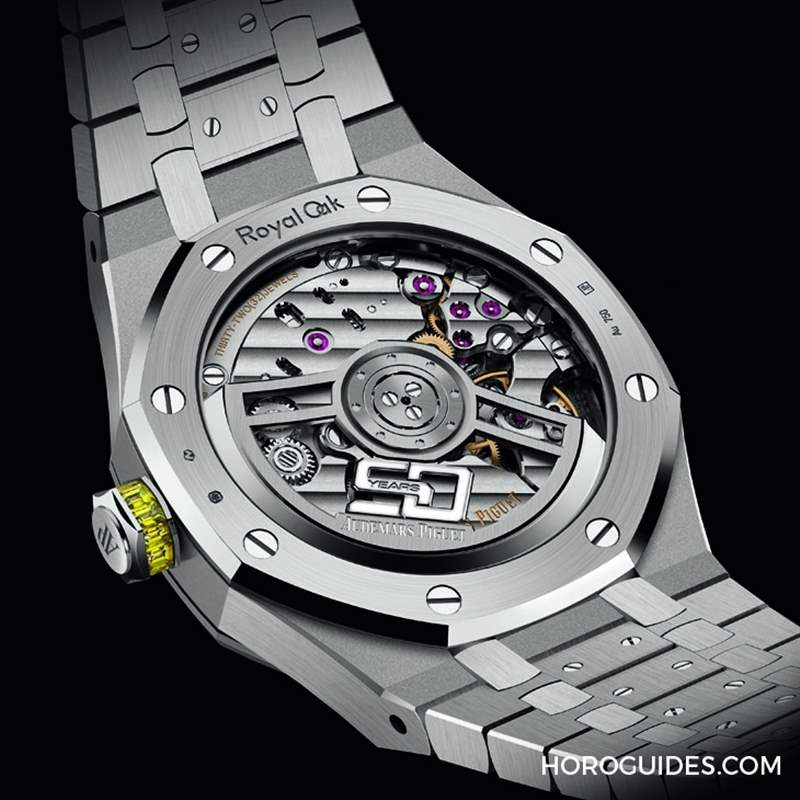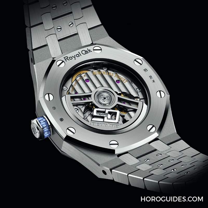 37mm款搭載5909機(jī)芯,這是最新的愛彼自制時分秒顯示自動上鏈機(jī)芯,動力60小時。41mm款搭載4309機(jī)芯,這枚機(jī)芯是愛彼為這個尺寸所開發(fā)的時、分、秒顯示自動上鏈機(jī)芯,動力70小時。這兩枚機(jī)芯皆配備為皇家橡樹50周年所特別打造的銠色調(diào)22K玫瑰金自動盤。