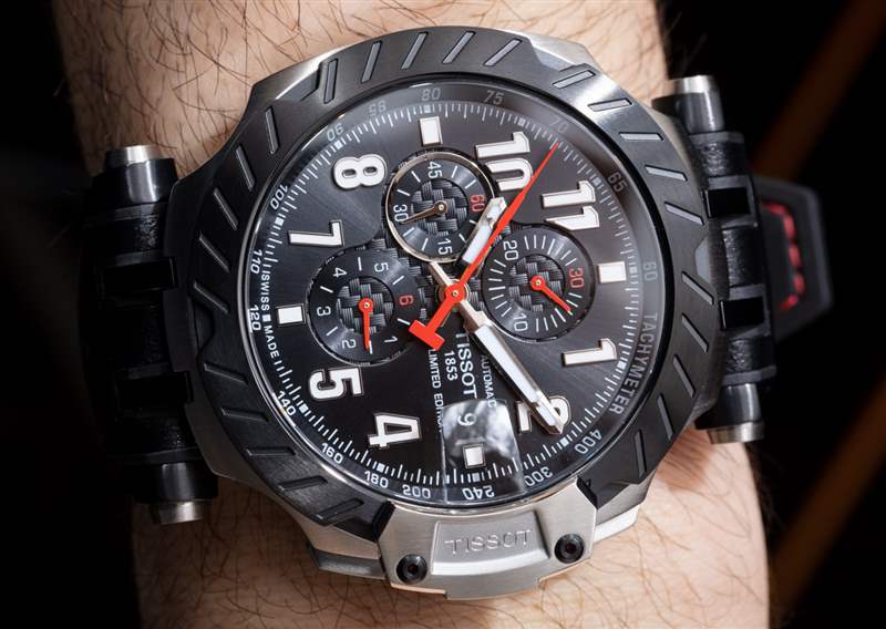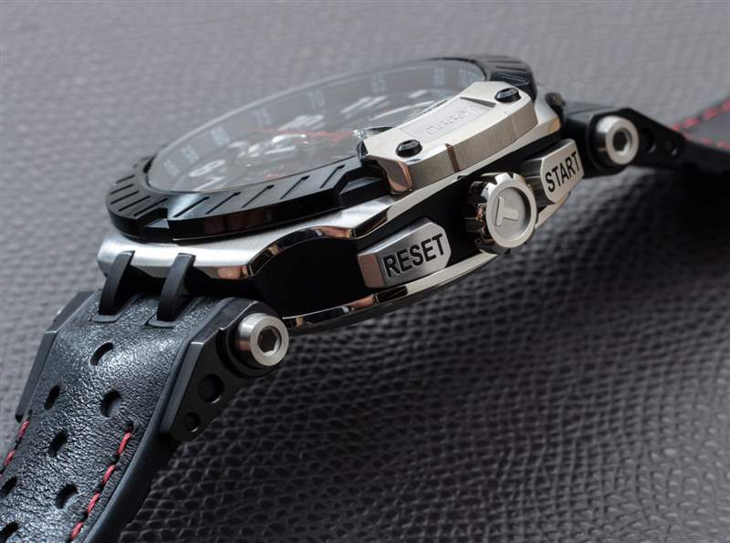 您要么喜歡或討厭 T-Race Automatic Chronograph 表殼,但不可否認它非常舒適。鑒于其龐大的尺寸和質量,這說明了很多。表殼寬 45 毫米,厚約 16.5 毫米。它還具有大約 49 毫米的凸耳到凸耳距離,實際上還不錯。雖然這沒有考慮到鉸接式表耳,這確實有助于 T-Race 表殼和表帶整齊地貼合在大多數手腕上。