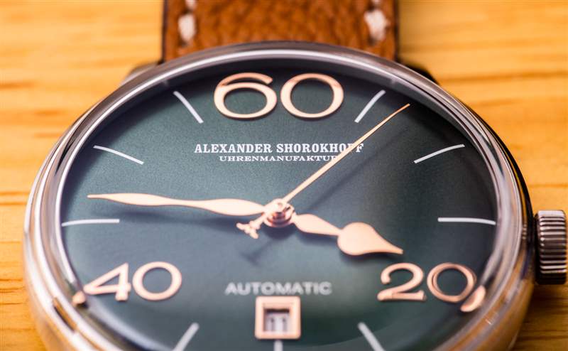 當然,40 毫米寬的鋼制表殼確實有一個擋板,但它在表殼的下方。仔細檢查拋光和拉絲表殼會發現精心制作的設計,在我看來,這有助于將這種休閑禮服手表與其他許多具有相對通用表殼設計的手表區分開來。Alexander Shorokhoff 談到表殼有多“扁平”——但實際上,它并不是 11.3 毫米的超薄。然而,這并不能使它成為一款特別厚的手表——對我來說,對于 40 毫米寬的休閑正裝手表來說,這是一個非常好的“恰到好處”的厚度。該表殼還可以防水 50 米(對于沒有旋入式表冠的這種更精致的手表是可以接受的)。