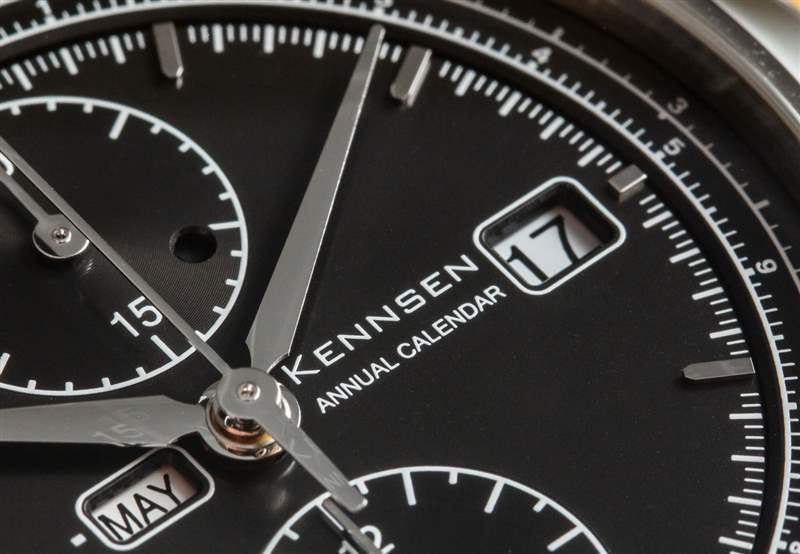 機芯模塊的問題在于,這往往會使手表變得很厚。對我來說,這是 Kennsen 年歷計時碼表最大的問題——這就是相對經典/傳統美學如何與更堅固的表殼比例相得益彰。Kennsen 做得不錯,但訓練有素的收藏家的眼睛會立即看到手表的某些元素對于其他元素來說看起來太大了。