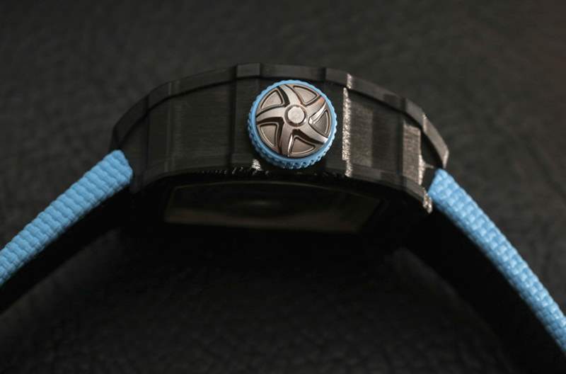 從手腕上欣賞手表也不難。Richard Mille 再次使用 TPT 碳作為表殼材料,這是一種層狀的碳,經(jīng)久耐用且非常好看。RM53-01 表殼寬 44.5 毫米,高 49.94 毫米(凸耳到凸耳)和 16.15 毫米厚(防水深度達 50m)。復雜的表殼設計與有趣的表帶系統(tǒng)(具有有效但具有諷刺意味的非豪華 Velcro 閉合系統(tǒng))相結合,使框架能夠展示對稱和視覺上引人入勝的內部運動。