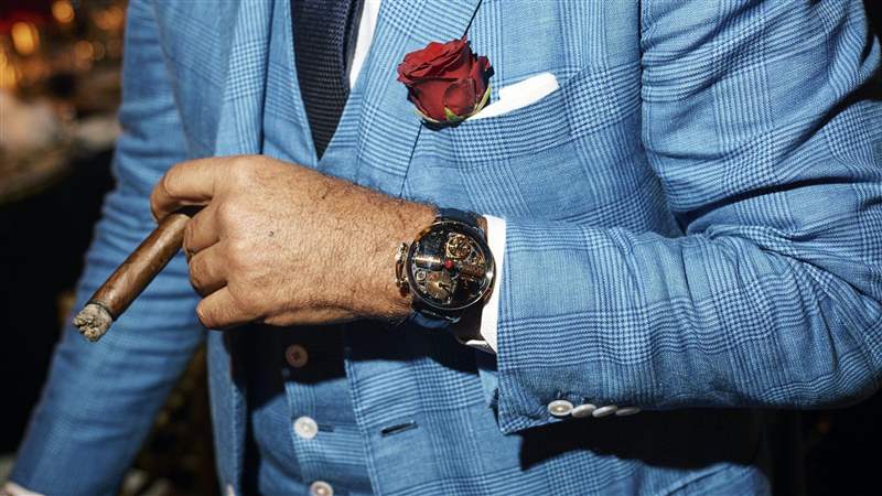 這讓我們看到了該品牌的新發明,完全沒有必要但又非常有趣的 Opera Godfather 50 周年紀念手表,一個 500,000 瑞士法郎的三軸飛行陀飛輪,向弗朗西斯福特科波拉黑幫電影致敬。Arabo 和他 30 歲的兒子 Ben Arabov(現為該品牌的首席執行官)共同設計了這款腕表,讓這款腕表給人一種 Vito Corleone 將火炬傳遞給 Michael 的感覺。中心裝飾品是一朵紅玫瑰,意在模仿他女兒康妮·柯里昂(Connie Corleone)與粗魯的卡洛·里齊(Carlo Rizzi)婚禮上的胸花。在通常是三點和九點的位置,一對酒桶包含劇本中的經典語錄。如果你看過這部電影,或者在過去半個世紀里剛剛生活在地球上,你可能會背誦它們——就像你可以哼出電影的主題曲一樣,