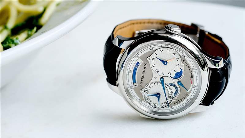 多年來,Journe 在保持對歷史和嚴格鐘表學的關注的同時,將他的美學結晶。也許這就是他最近提交的 Only Watch 提交的 FFC Blue 和 Astronomic Blue 引人注目的原因——大多數品牌在經過數十年的創新后可能難以保持這種自由。