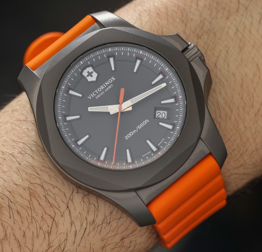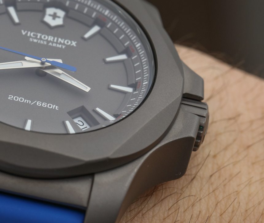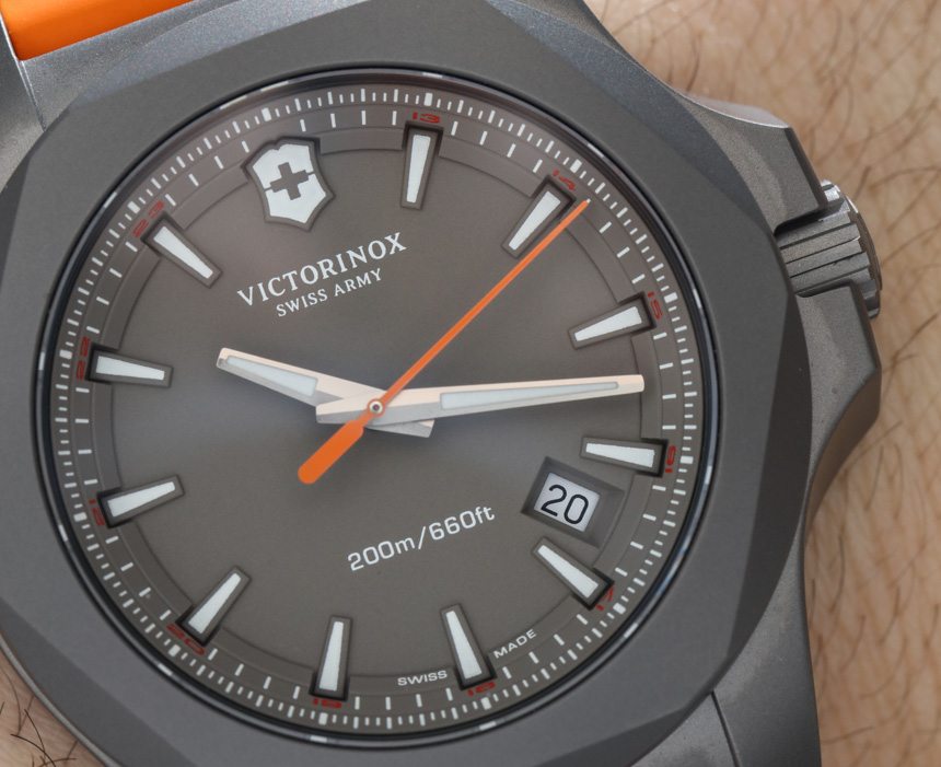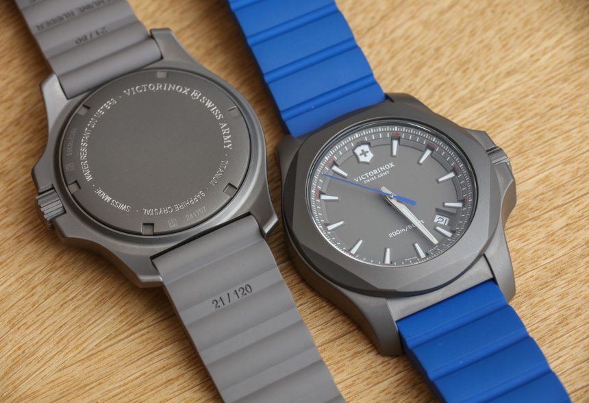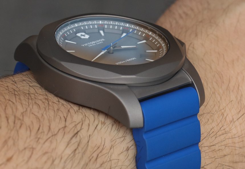與最初的 INOX(此處為 aBlogtoWatch 評論)一樣,Victorinox Swiss Army INOX Titanium 表殼寬 43 毫米。如果您還記得,這就是 Victorinox Swiss Army 投入數十次壓力測試的手表。無論是否矯枉過正,INOX 手表系列都可以經受住很多考驗,包括老化、沖擊、寒冷、高溫和極速。Steel 很好地處理了一系列測試,據我所知,該品牌現在已經對 Victorinox 瑞士軍 INOX Titanium 進行了相同的測試(并且可能通過了)。