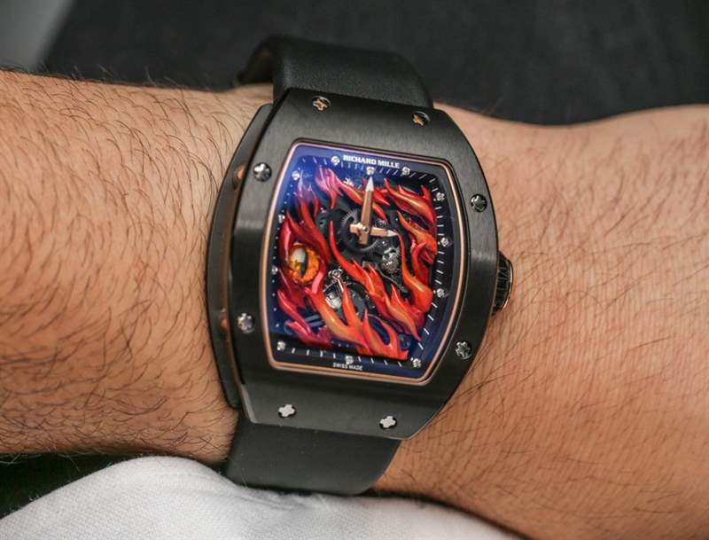 Richard Mille正迅速成為高預算微型模型愛好者的首選品牌。在香港 Watches & Wonders 2015 年末新款 Richard Mille 手表中,人們可以很容易地了解到 Mille 先生對他的手表(以及其他許多東西)非常認真作為超現代的微型藝術展示。像虎龍在陀飛輪前對峙的手表,或者讓流行文化準確的理查德米勒 RM 26-02 邪眼手表被火焰籠罩之類的東西都是奇怪的主題,實際上會分散人們的注意力,讓他們無法欣賞它們的瘋狂細節是。