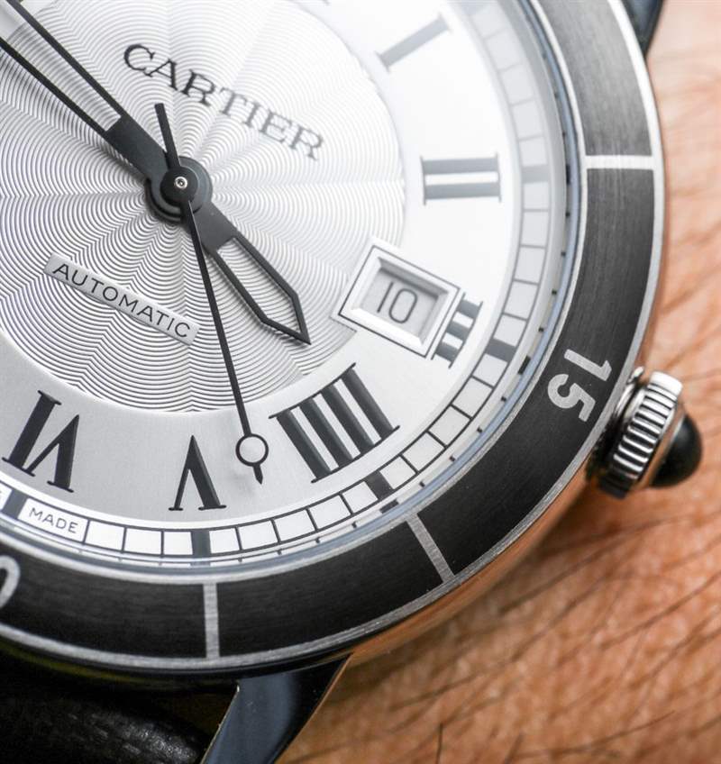 從簡單的設計角度來看,卡地亞 Ronde Croisiere 表盤很可愛。外面有一個傳統風格的分鐘軌道,后面是一圈卡地亞羅馬數字,里面有一些紋理。一切都很合適,比例也很好,但當然,易讀性存在問題。在灰色表盤款式上,羅馬數字的拋光過度,折射光線,影響易讀性。從某種意義上說,它們有助于突出卡地亞 Ronde Croisiere 型號的銀色表盤,因為它具有更好的對比度和更少的光反射率,因此效果更好。