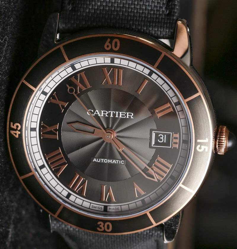Cartier Ronde Croisiere 的表圈設計看起來像旋轉的潛水員表圈,但它是固定的。精鋼表圈采用 ADLC 黑色啞光涂層,賦予其獨特的外觀。這在鋼和金型號上非常有效,在表圈和 18k 玫瑰金表冠上增加了一些 18k 玫瑰金鍍層。黑色尖晶石用作表冠的凸圓形材料,與許多其他卡地亞手表更常見的藍色藍寶石水晶形成鮮明對比。皇冠非常符合卡地亞設計 DNA 的范圍。