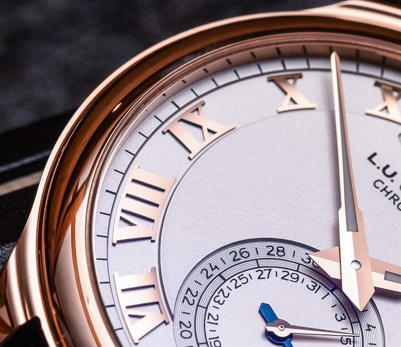 蕭邦 LUC Quattro 表盤上的時間指針為金色,與表殼材料顏色相匹配。動力儲存指示器和日期的指針是藍色的——這是一種很好的增色方式,可以幫助人們避免與指針混淆。表盤有輕微的深度,包括各種級別以及應用的指示器。平面表盤是任何高端外觀的敵人,更多的手表制造商知道這一點。我覺得蕭邦對 LUC Quattro 表盤的處理非常成功,盡管設計試圖稍微前衛(wèi)(從藝術角度來看,這在一天結束時往往是一件好事)。