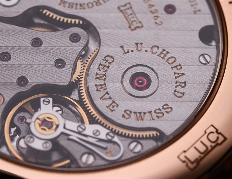 蕭邦雖然還沒有達到許多品牌的精加工標準,但已經非常接近了,經驗豐富的收藏家認為這些標準有助于定義優(yōu)質機芯的精加工。在談論 98.01-L 機芯時,解釋這是一個很好的起點,它忠實地占據了手表的大部分底蓋窗口。手動上鏈,機芯由 223 個零件制成。
