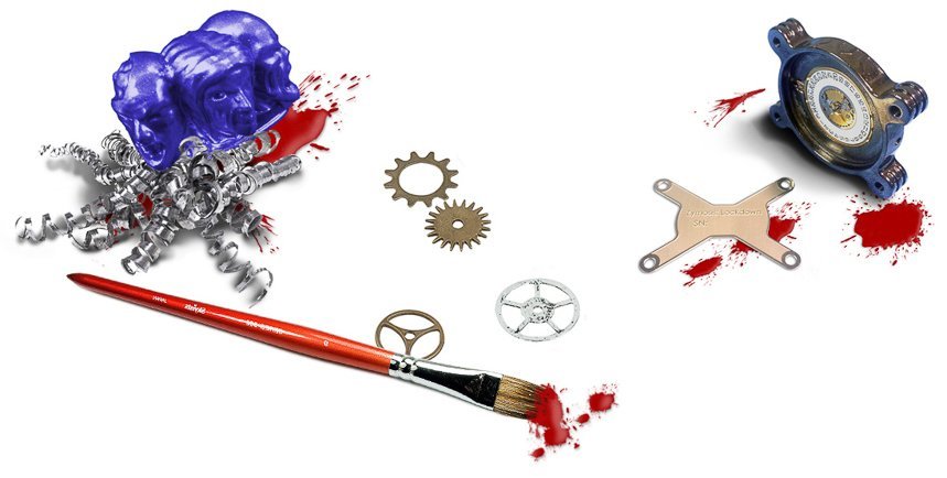 Zymosis Lockdown 系列分為四種型號(對不起,公司稱它們為“菌株”),包括 T1W1(紅色和黃色)、T1W2(棕色和金色)、T1W3(紫色和綠色)和 T1W4(藍色和紅色)。我的感覺是,這些手表的生產更像是小型模型而不是手表,這意味著各種元素是手工繪制的而不是涂層的——至少,這是我從 Time Warp Creations 提供的帶有零件和畫筆的圖像中得到的印象.