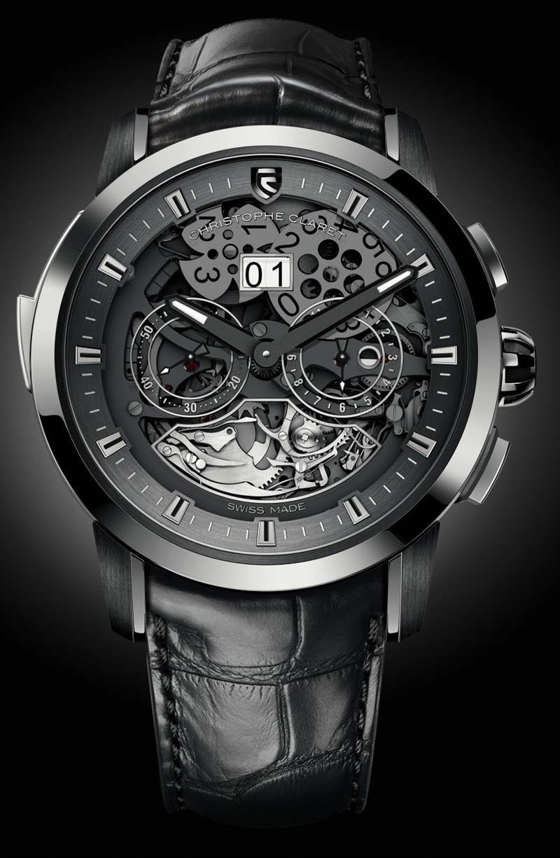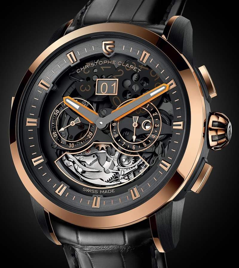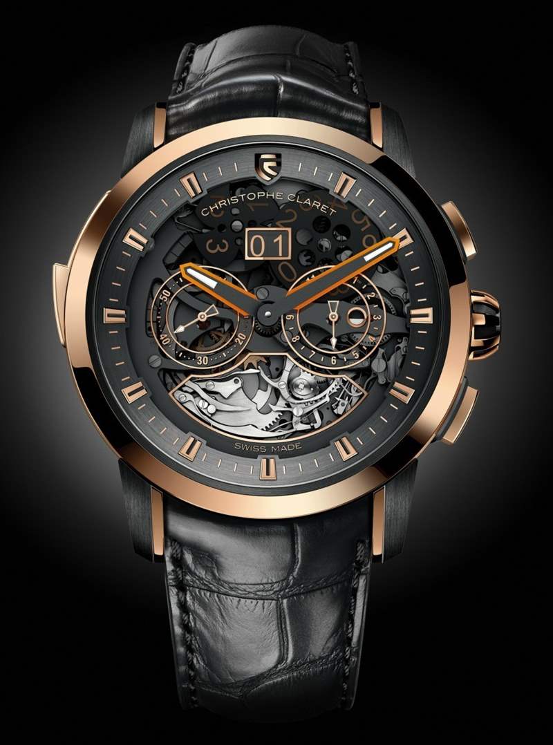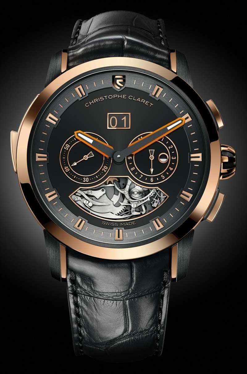 Christophe Claret Allegro 表殼寬 45 毫米,厚 14.1 毫米(防水深度僅為 30 米)。2015 年將推出三款限量版車型。兩款采用 18k 紅金和鈦元素,一款采用 18k 白金和鈦元素。有趣的是,兩款紅金和鈦金屬款中的一款與另一款相同,但表盤僅在“開口”部分進行了鏤空處理。這是我第一次看到兩種不同的 Christophe Claret 腕表型號之間如此細微的差別。