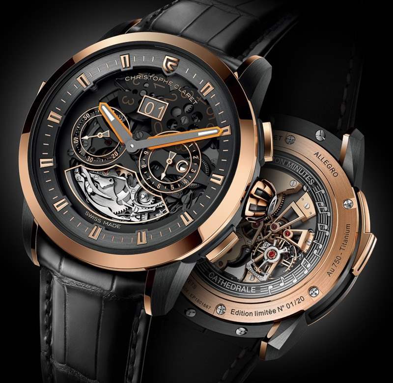 Claret 先生知道關于他的傳統主題而又現代的時計的一些非常重要的事情……那就是,對于許多人來說,它們是玩具。漂亮而復雜的玩具,是的,但歸根結底,玩具……玩具是用來玩耍和欣賞的。因此,對于 Christophe Claret Allegro,他們將三問報時裝置的主要機械元件置于表盤一側,并通過機芯表盤上的窗口清晰可見。雖然整個表盤在技術上都是鏤空的,但除了表盤底部的“嘴巴”外,大部分都是煙熏的。三問報時裝置的音錘和音簧置于表背。