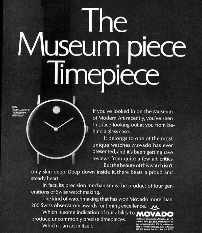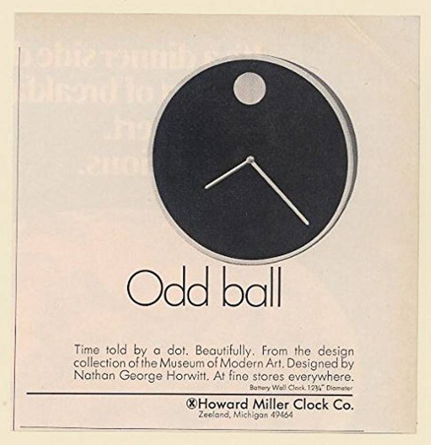 在 1960 年代,博物館表盤作為掛鐘和臺鐘變得非常流行。生產(chǎn)由受歡迎的家具制造商 Herman Miller 完成。我不完全確定導(dǎo)致 Herman Miller 銷售和分銷時鐘的業(yè)務(wù)安排。在上面的廣告中,您可以看到 Herman Miller 時鐘表明了一些有趣的事情。首先,在當時,鐘表的設(shè)計被認為很奇怪——但又非常漂亮。從“奇怪的球”聲明中可以清楚地看出這一點。其次,Herman Miller 在他們的廣告中承認 Nathan George Horwitt 以及 MoMA 的“設(shè)計收藏”。我認為這個問題很突出,因為在 1960 年代的同一時間,記錄似乎表明摩凡陀繼續(xù)生產(chǎn)博物館表盤的腕表版本。