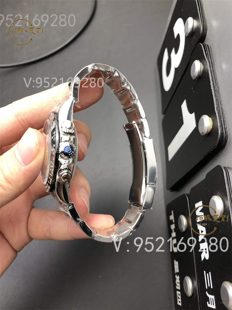 2,盤面細節:字面對照2022最新版白面,采用瑞士油墨加韓國陶瓷調制打磨做到有厚質感純乳白色與原版無色差;字體,我們看到的圖片都是手機實拍,不存在加工處理。品牌LOGO金屬高拋光,光澤亮麗,開口正確;盤面字體油墨均勻,平滑立體無外溢,所有刻度釘均是CNC雕刻而成,并且經過打磨處理,看上去潤滑光亮;賽道圓環清晰立體,無雜質痕跡,且數字形態無折痕。