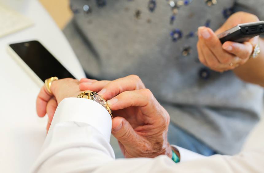 當你看到 Jackie 欣賞自己手腕上的手表時,你可以看出手表人的跡象。在考慮設計的格式塔時,有一種敏銳的目光會吸收所有細節。他的手贊賞地撫摸著水晶玻璃、表圈和手鏈。這是 Jackie 佩戴過無數次的手表,至今仍給他留下深刻印象。此刻,他佩戴的是 18k 金 GMT-Master II,但在過去的幾天里,我看到他佩戴的是 Everose Cosmograph Daytona,還有搭配綠色表帶的全新綠色表盤金質 Day-Date。綠色是他的顏色,英國賽車的顏色,它恰好也是勞力士的顏色。