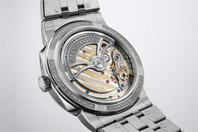 朗格腕表的背面向來是焦點所在,Odysseus搭載的是L155.1 DATOMATIC自動上鏈機芯,零件打磨得順滑亮麗,以德國銀制造的夾板則飾有的格拉蘇蒂條紋;而經(jīng)黑色鍍銠處理的鏤空擺陀,完全上鏈可提供50小時的動力儲備。