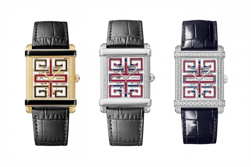 先解構(gòu)表名法文的「Chinoise」,意思即是「Chinese」,很明顯是腕表注入了中式藝術(shù)。其實卡地亞早于1930年已推出Tank Chinoise腕表,當(dāng)年將中式廟宇建筑風(fēng)格及寺廟門廊的幾何造型,融入表殼線條上。今年的新表,中式設(shè)計及視覺效果變得更突出,將鏤盤鏤空雕刻成中式窗欞,屬中國傳統(tǒng)木造建筑的框架結(jié)構(gòu),并飾以中國工藝常用的黑色及紅色真漆,而窗欞背后便是品牌全新研發(fā)的9627 MC型鏤空機(jī)芯。這枚中西合璧的Tank,絕對華美貴氣。腕表備有黃金及鉑金型號,各限量100枚,而鉑金鑲鉆款則限量20枚。