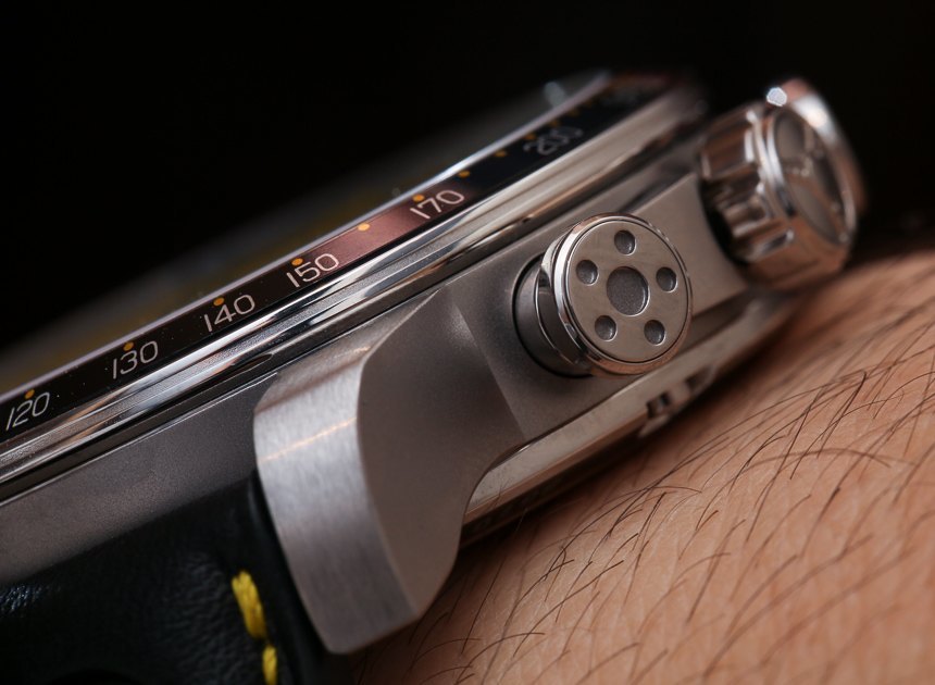 一些小的汽車外殼細(xì)節(jié)又回來了,其中包括活塞式計時按鈕以及表冠上的方向盤標(biāo)志。底蓋用一系列六角螺絲固定到位,使整體外觀升級。該表殼防水深度達(dá) 100 米,這是對之前型號 50 米防水深度的非常受歡迎的升級。這可能看起來沒什么大不了的,但 100 米的防水性能使這款產(chǎn)品進(jìn)入真正的“運動手表”領(lǐng)域,而不僅僅是一款具有高品質(zhì)組件的運動時尚手表。