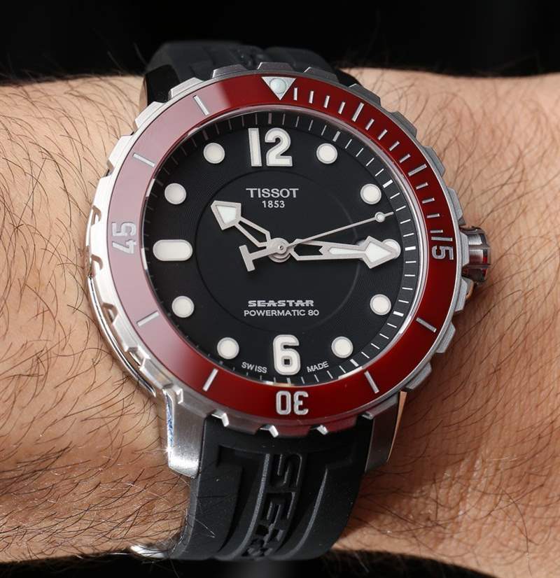 今年天梭將發布三個版本的 Seastar 1000 Powermatic Diver。它們包括帶黑色表盤和帶藍色飾邊表圈的 Seastar、帶紅色表圈的黑色表盤,以及配套的帶藍色表圈的藍色表盤。這些手表可搭配鋼制金屬表鏈或帶有品牌標識且貼合的橡膠表帶。