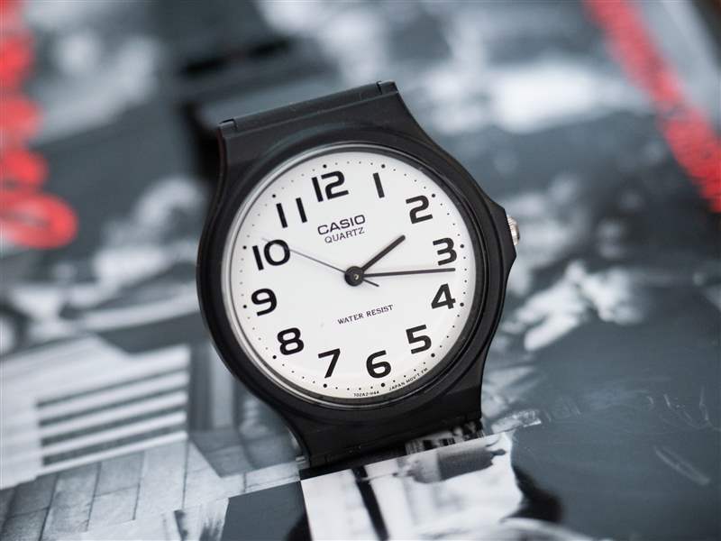 在任何一天,“世界上最便宜的手表是什么”這個問題的答案取決于你在哪里看什么,但一個好的候選者通常是卡西歐的一塊不起眼的小手表,沒有任何名字EAW-MQ-24-7B2 除外。這是一款小型(35 毫米)圓形塑料石英手表,裝在一個藍白相間的紙箱中,里面是一個塑料袋(如果你愿意,你可以稱之為小袋),里面裝著真正的手表,還有一個六語言指導手冊。我一邊寫一邊看著我的——它在亞馬遜上售價 14 美元和 79 美分——雖然除了它的本來面目之外沒有人會把它誤認為是什么,但它本身并非沒有魅力。
