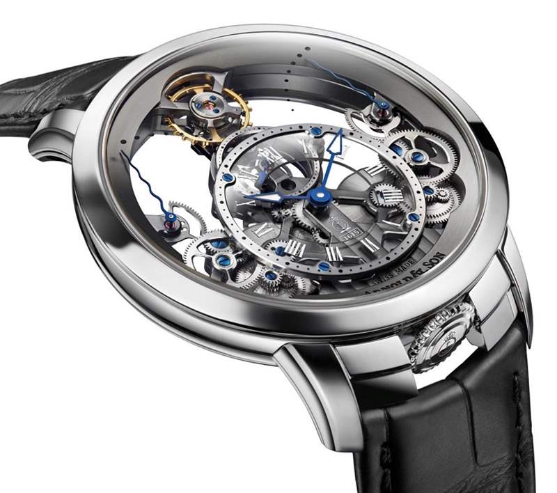 Arnold & Son 在瑞士的 La Joux-Perret 手表制造商生產(chǎn),這意味著所有機芯都是內(nèi)部制造的。他們生產(chǎn)了一些非常令人印象深刻且巧妙的機械裝置,這些機械裝置的外觀和操作方式都吸引了鐘表愛好者。時間金字塔內(nèi)部是 Calibre A&S1615 手動上鏈機芯,厚度僅為 4.4 毫米。它以 21,600 bph 的速度運行,并具有 90 小時的超長動力儲存。