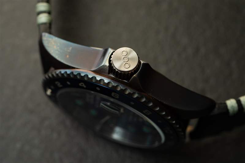 從相似之處開始,每款手表均采用 42 毫米寬(表圈處 43.5 毫米)、12.7 毫米厚和 5??0.4 毫米表耳到表耳(根據(jù)我的測(cè)量)316L 不銹鋼表殼,由瑞士制造Ronda 515 24 小時(shí)石英機(jī)芯。這些表殼雖然由 316L 不銹鋼制成,但由于經(jīng)過了 Out of Order 的老化過程,因此不會(huì)呈現(xiàn)出標(biāo)準(zhǔn)的鋼色調(diào)。這種老化過程會(huì)產(chǎn)生帶有斑點(diǎn)、漩渦和獨(dú)一無二的圖案的銅色調(diào),其顏色從深墨紫色到帶有翠綠色調(diào)的金色黃銅。盡管外觀陳舊,但表殼的精細(xì)拉絲飾面在表面之間呈現(xiàn)出清晰的過渡,并且沒有可見的工具路徑痕跡。