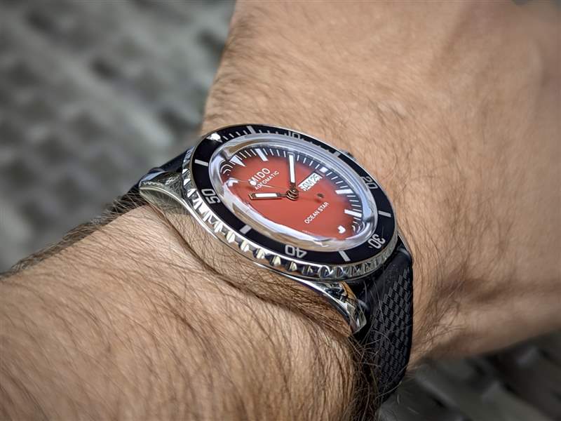 盡管 Ocean Star 系列中的每款手表都有很多相似之處,但每款手表的佩戴體驗(可能還有目標消費者)卻大不相同。Tribute Gradient 系列(起價950 美元)具有經典的復古風格和有趣而古怪的表盤:夏季手表的絕佳選擇。Tribute Gradient 適中的尺寸最適合手腕較小的人(我的是 6.75 英寸)。Tribute Gradient 可能是這一系列中功能最少的,但可以說是最舒適、最有趣的。