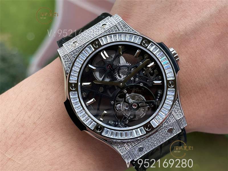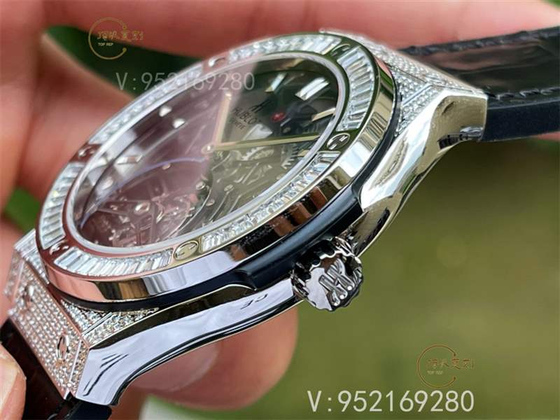 JB宇舶(恒寶)經典融合(CLASSIC FUSION)系列陀飛輪獨家首發!突破以往仿品,獨占陀飛輪“三宗最”:鏤空部位最多、厚度最薄、還原度最高!入手三大理由:1、殼型和尺寸均同步原裝,百搭又不顯大:圈口直徑42mm,外殼直徑45mm,厚度11.7mm,各個角度看上去殼型和原裝一致,氣宇非凡。2、機芯穩定,還原度高:定制量產HUB6010手動上鏈陀飛輪機芯,96%以上接近原裝結構,所有齒輪真實傳動無裝飾,48小時續航,精準5±日差出貨。3、材質考究,成色好:表殼在純水刀切割精鋼的基礎上電鍍加厚18K玫瑰金/鉑金,經久不掉色成色好,表帶正面為頭層牛皮,背面為進口泰國天然橡膠,柔韌服貼又防水,正反兩面鏡面均為藍寶石水晶玻璃,防刮且通透。腕表整體大方又百搭,適合各個年齡階段的成功男士,上手效果極佳。JB Factory-專為高端陀飛輪而生。