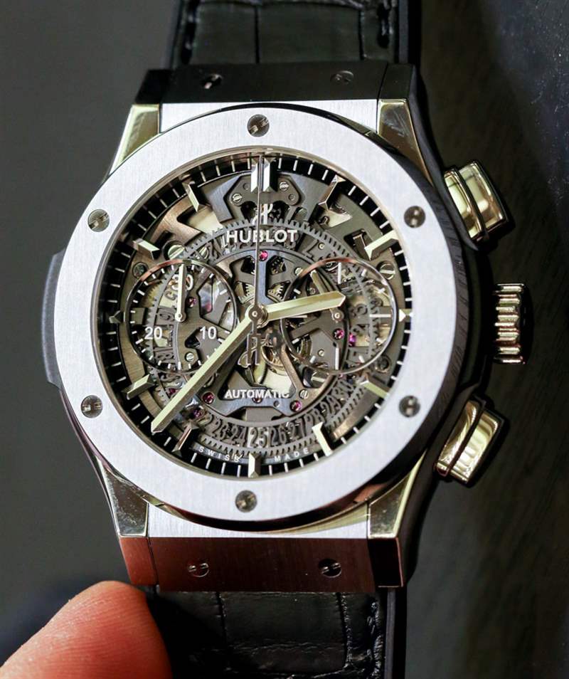 如果將Hublot?Aero Bang 和Classic Fusion混合使用,您會得到什么?當然是 Classic Fusion Aero 計時碼表 (Chrono)。2013 年,宇舶 (Hublot) 發布了鈦金屬和 18k 紅金的新型號系列,是兩個成功產品線的完美結合。這可能是您正在尋找的不那么強烈的現代外觀鏤空計時碼表。