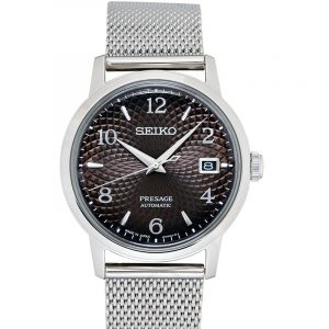 要在有限的預(yù)算內(nèi)選擇一枚大方得體的手表,精工表會是一個實而不華之選。此表屬于Presage系列,可算是Seiko中最能展現(xiàn)日本制表工藝的系列。此款男裝手表采用網(wǎng)狀精鋼表鏈,圓形表殼置有眩目的深啡色花網(wǎng)紋表盤,襯以銀色時標(biāo)及指針,澄明而雅致。